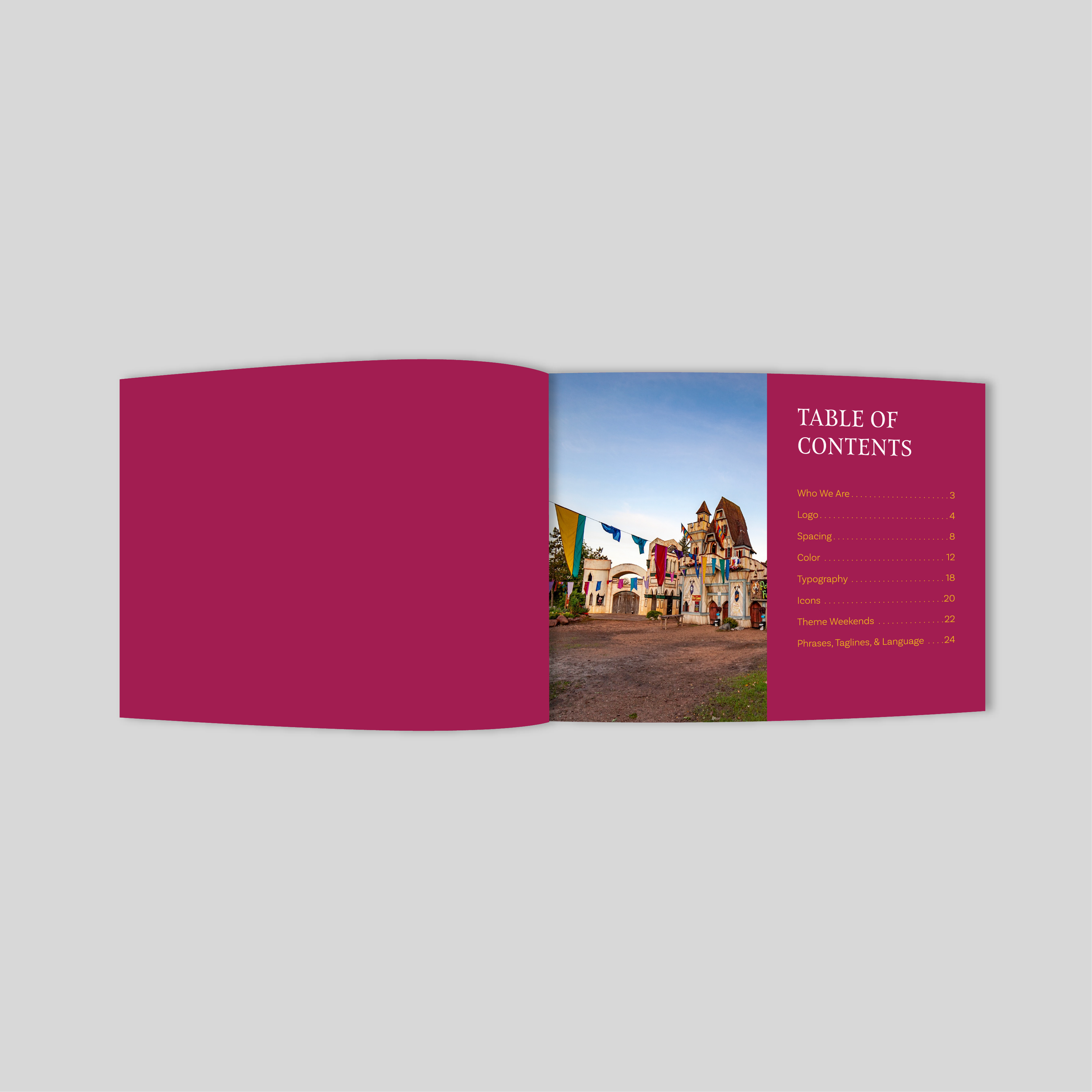 Balancing historical influence with modern fantasy, the style guide serves as a foundational reference for maintaining a cohesive and recognizable brand across marketing materials, theme weekends, and audience-facing communications.