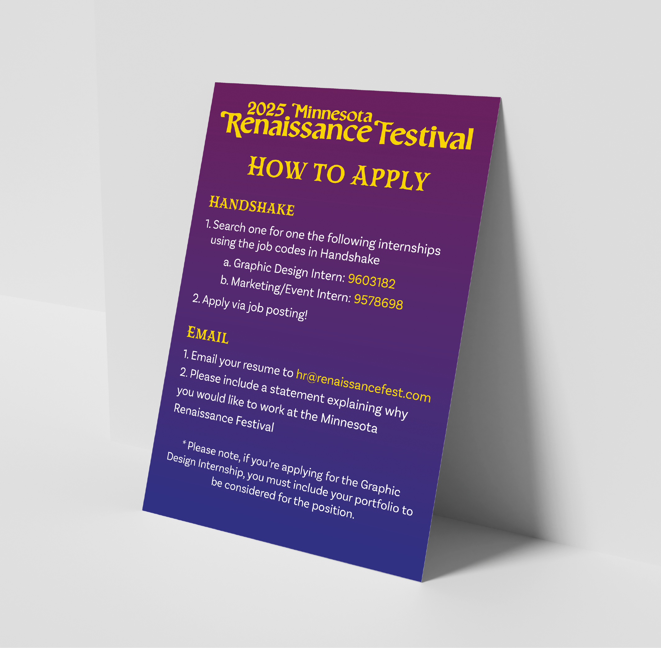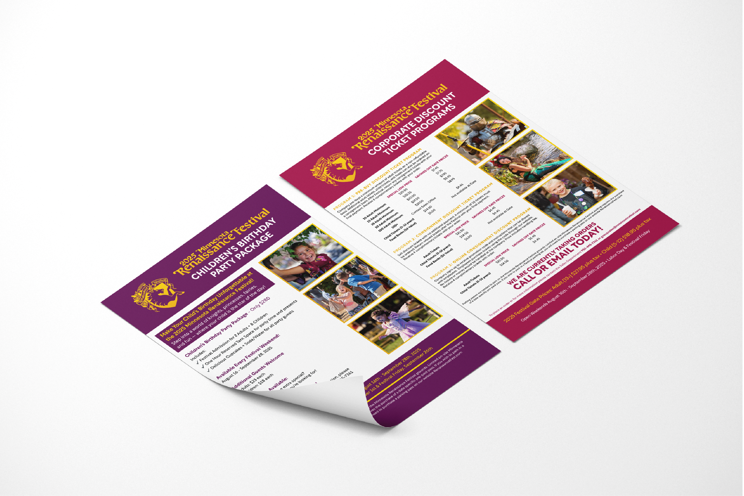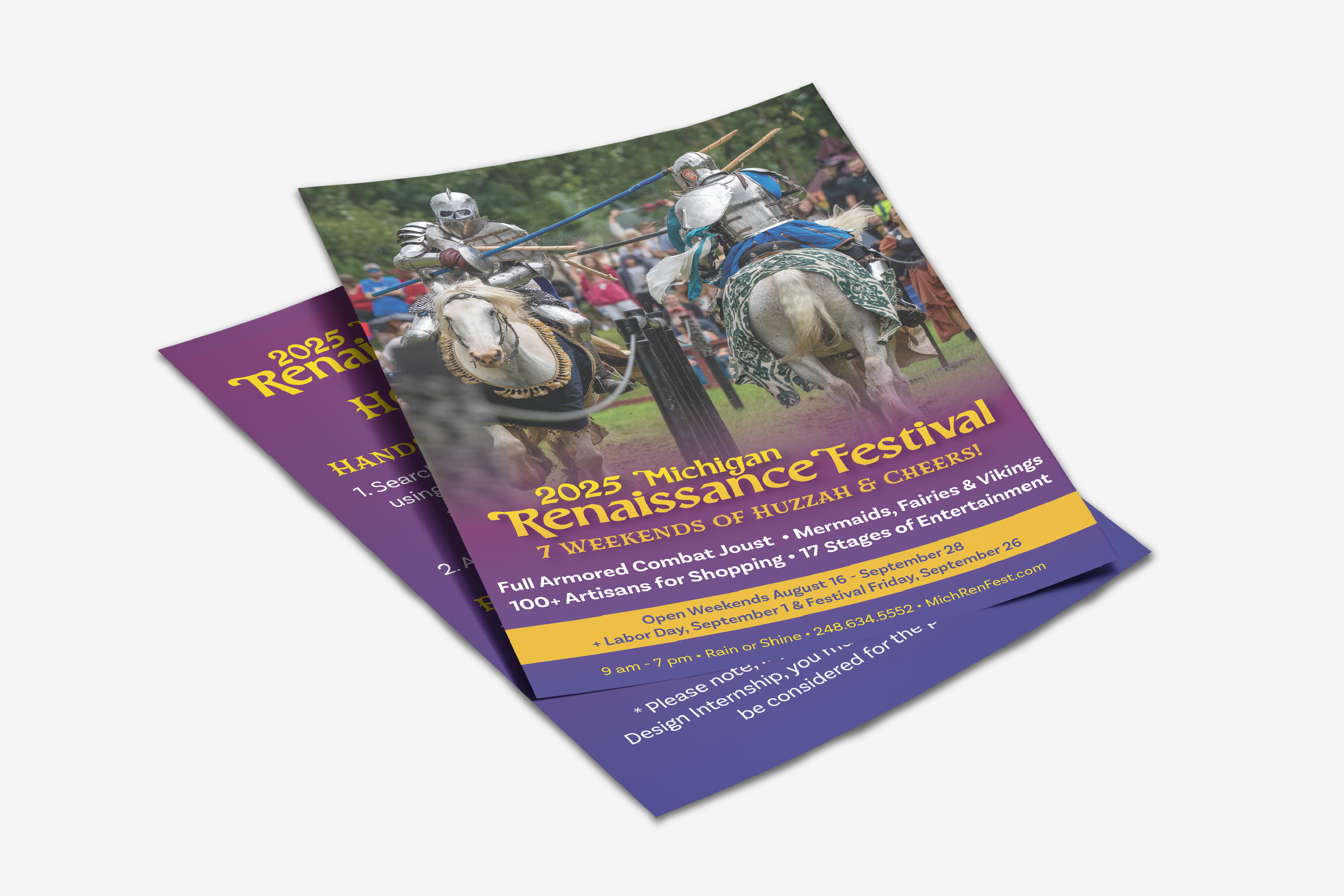 I designed a wide range of flyers for the Minnesota, Michigan, and Bay Area Renaissance Festivals, supporting promotions, announcements, and informational needs across multiple audiences.